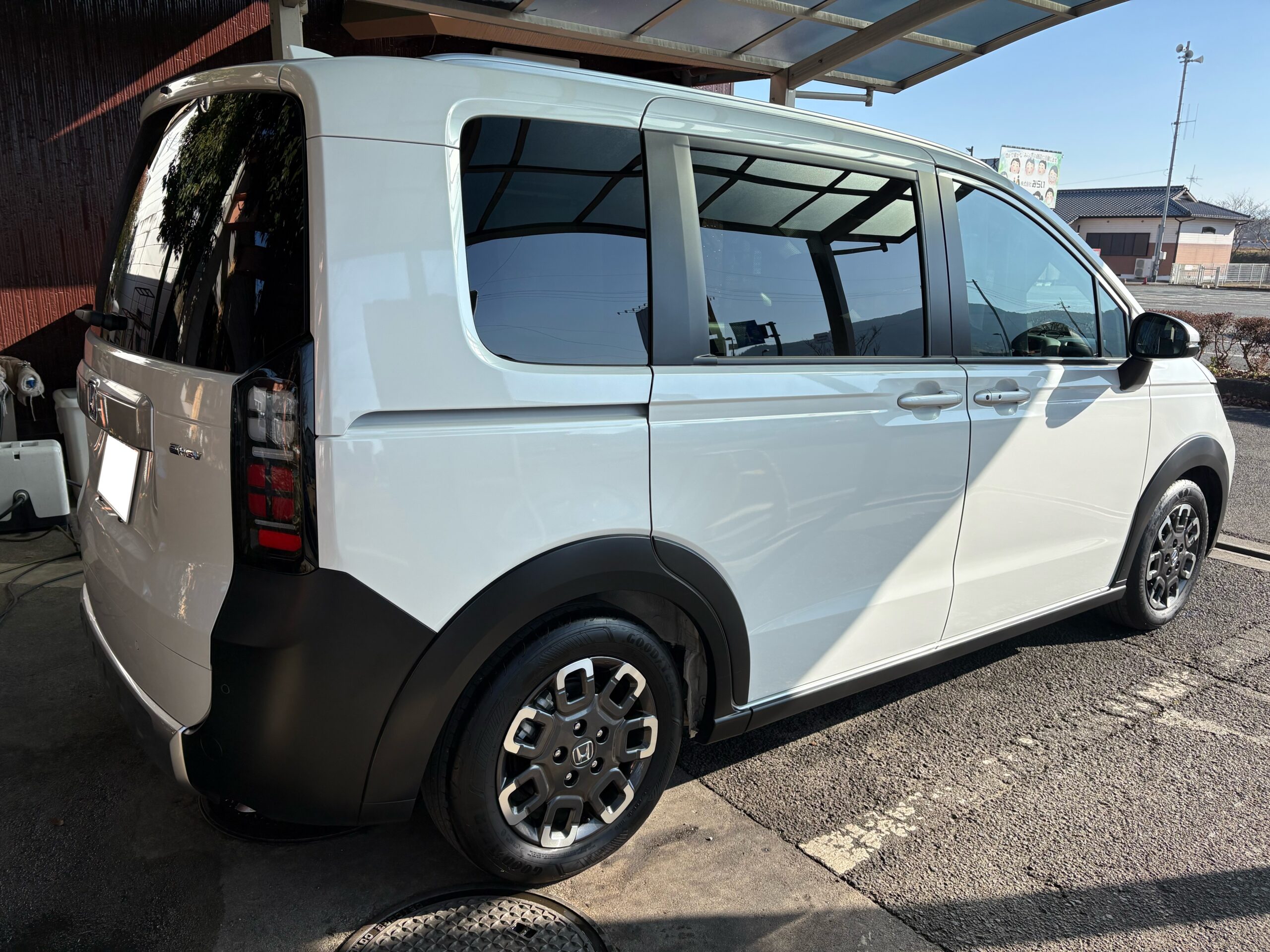 フリードを最近購入されたそうでボディガラスコーティング1年耐久と全面ガラスコーティングのご依頼となりました。 来店された時の状態よりも綺麗に仕上がりました