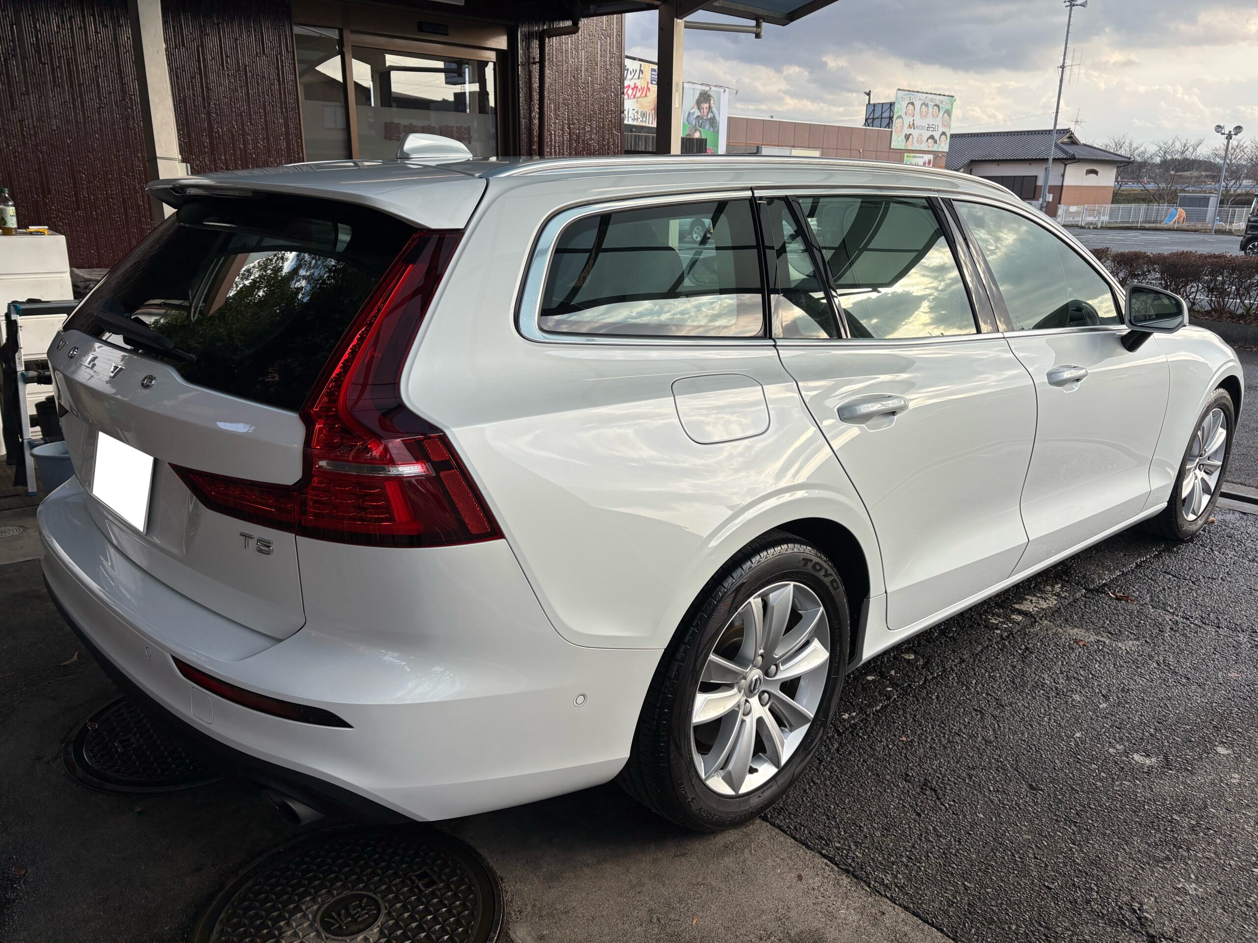 パールホワイトカラーなので水垢は目立ちにくいのですが、オーナー様が言われる通りボディ全体に水垢が付着しておりました🥲