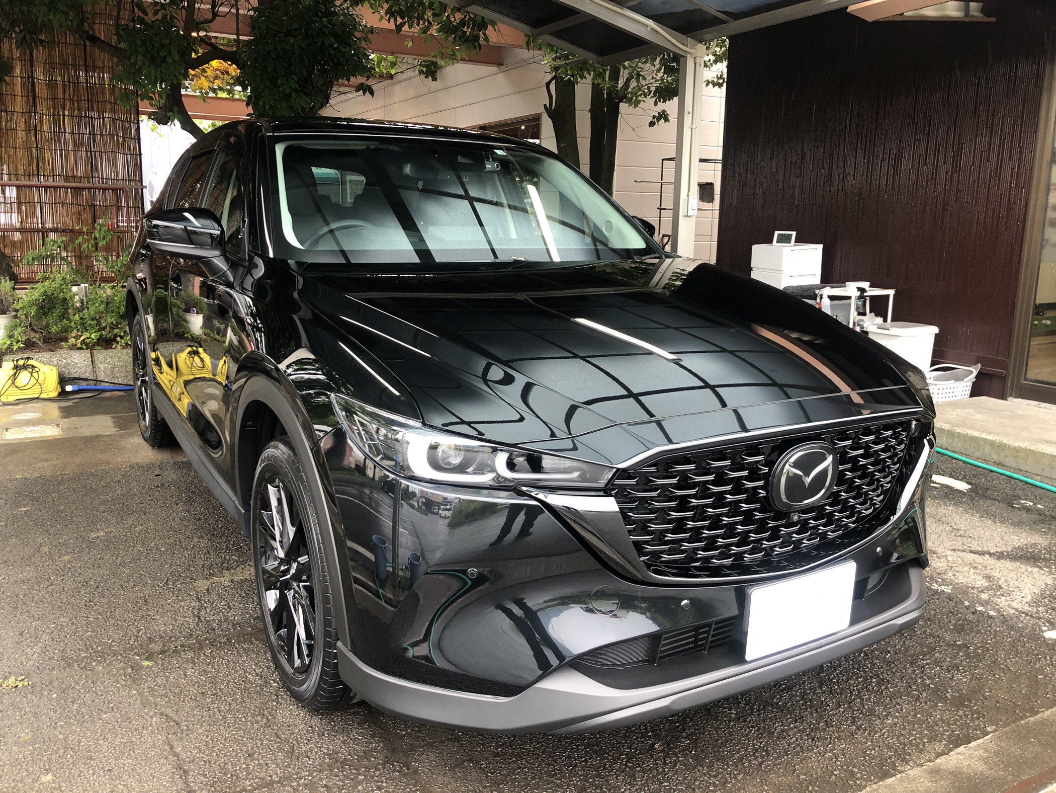 ご紹介する車は、今年新車をご購入されてボディガラスコーティング1年耐久を施工されているマツダ CX-5の洗車を致しました。