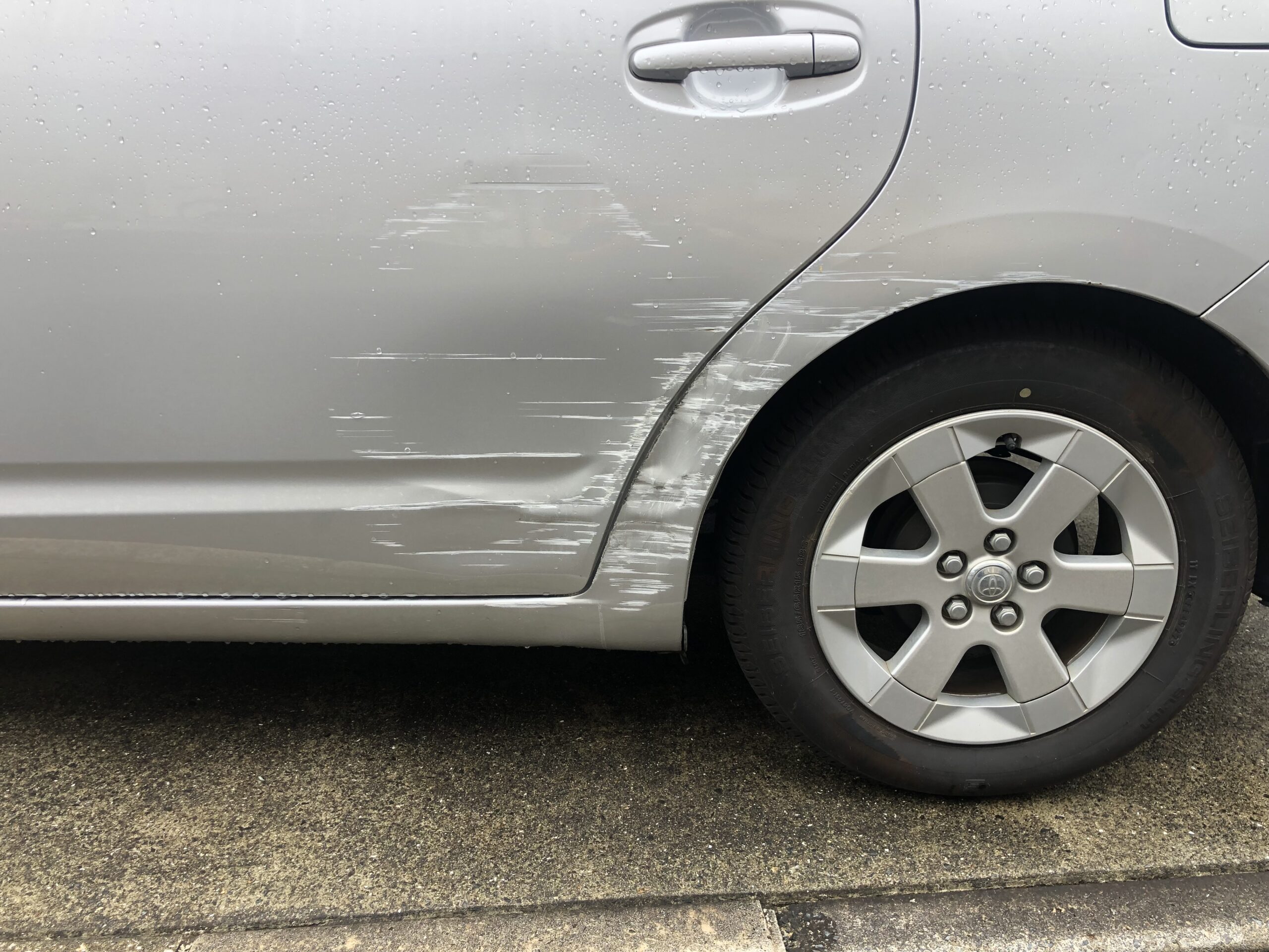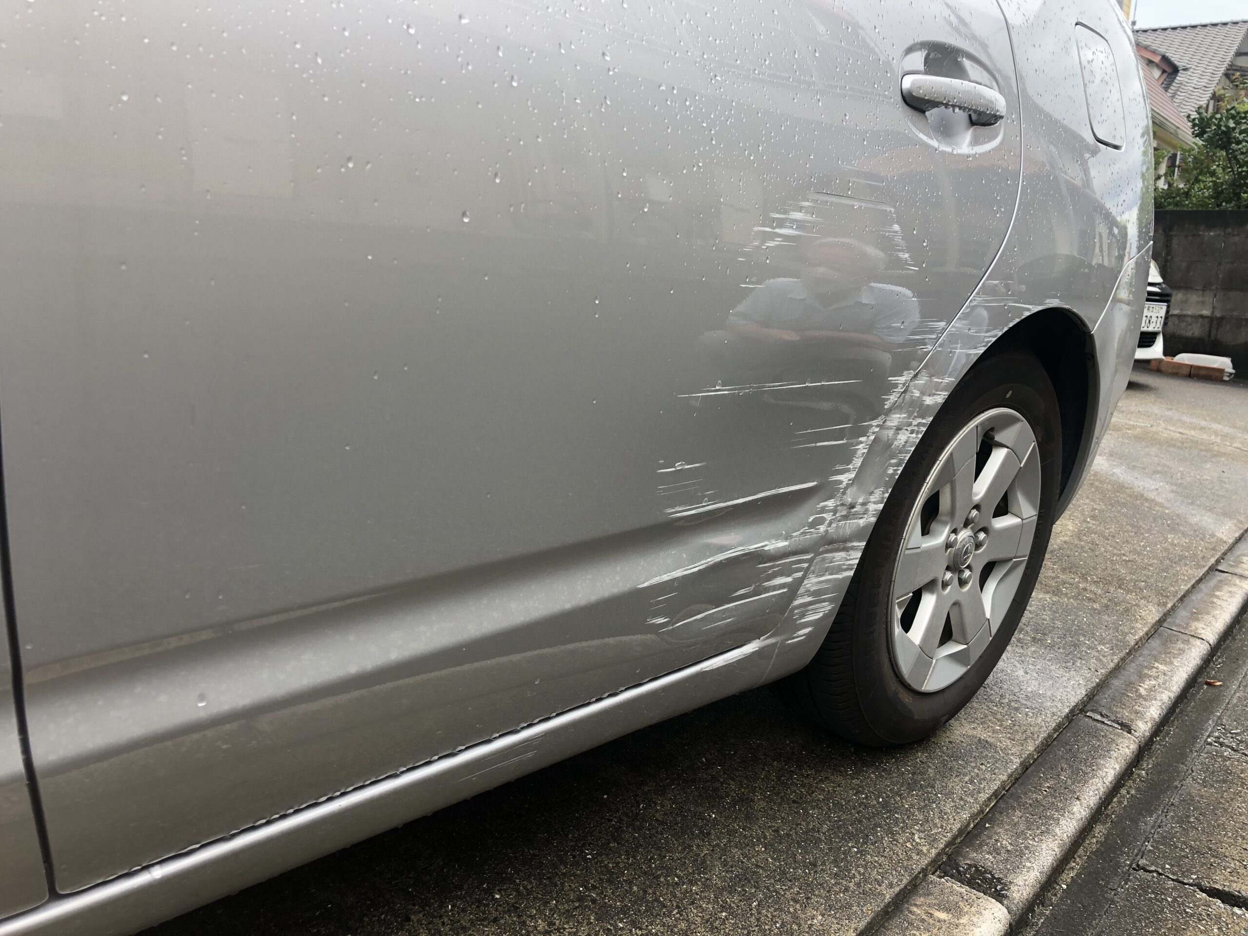 ご自宅へ帰宅の際、左折時に左リヤドアと左クォーターパネルを損傷してしまった!との事で修理、その後ポリマーコーティングを施工しました。