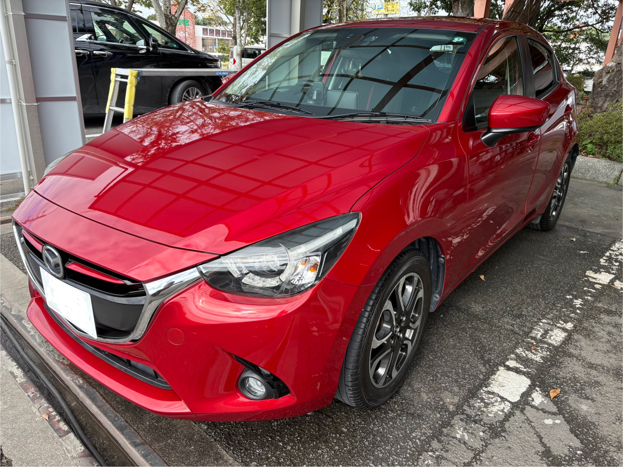 こんにちは😃磨きま専科の中村です。本日は マツダ デミオをご紹介致します。夏場に全面ガラスフッ素コーティングをご利用して頂き,今回はボディガラスコーティング1年耐久のご依頼となりました