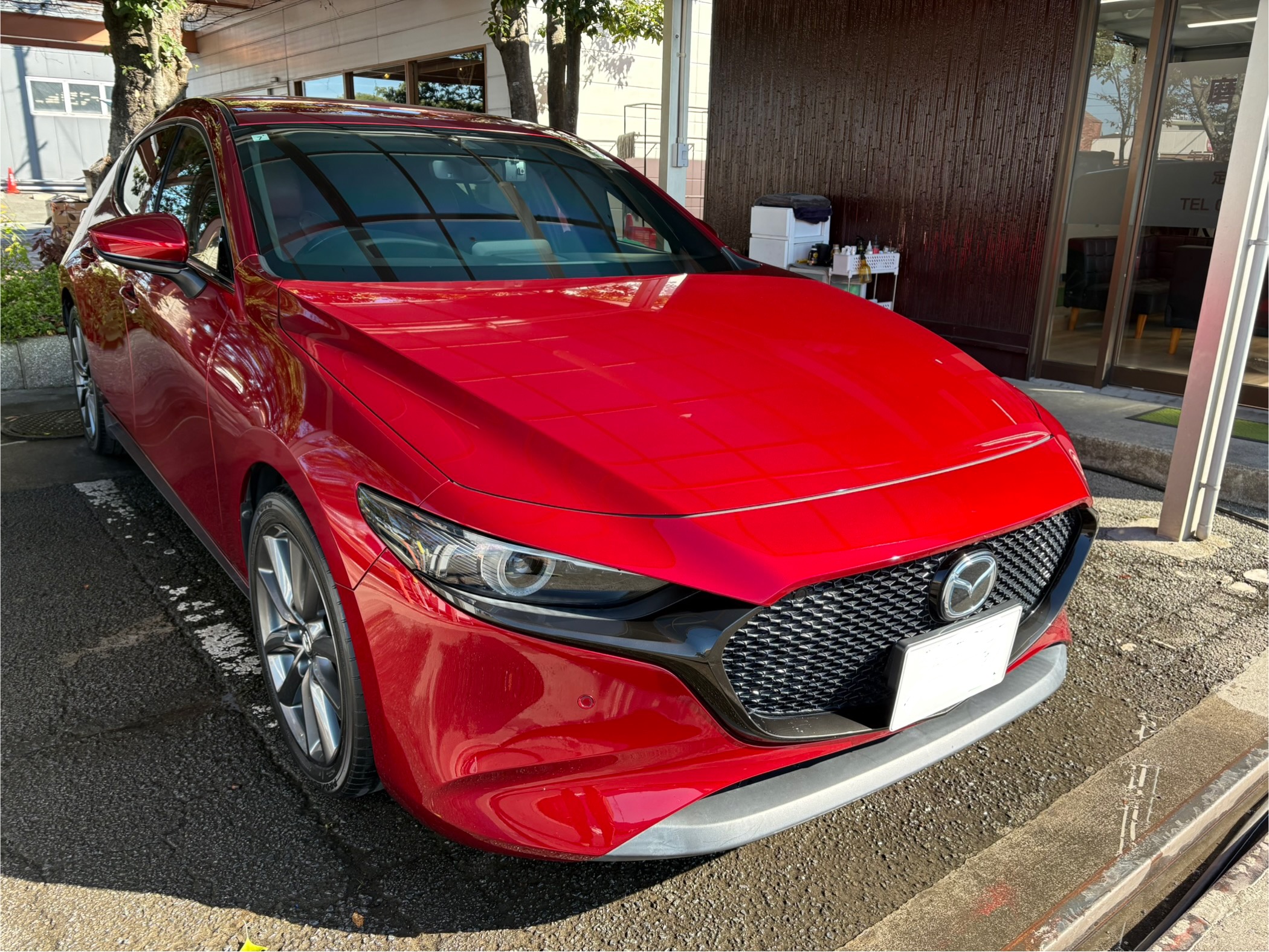 こんにちは😃磨きま専科の中村です。本日は マツダ MAZDA3 & CX-3 をご紹介致します。まずは、MAZDA3 の洗車にてご来店頂きました。購入して約2ヶ月!ご自身