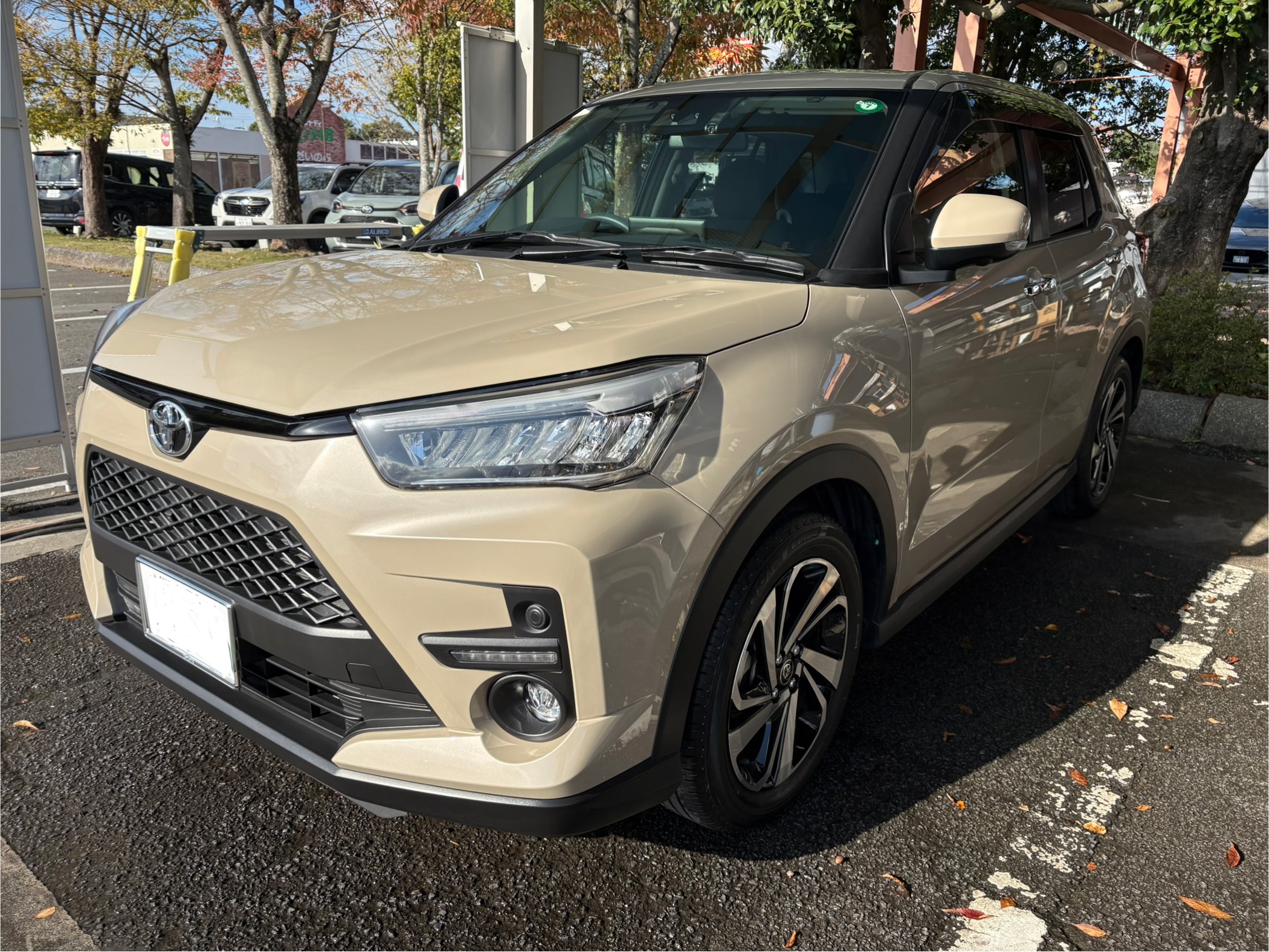 こんにちは😃磨きま専科の中村です。本日は トヨタ ライズをご紹介致します。やっと探し会えたライズだそうです。大切にされていることが伺える素敵なライズです。今回は洗車とフロントガラスのフ