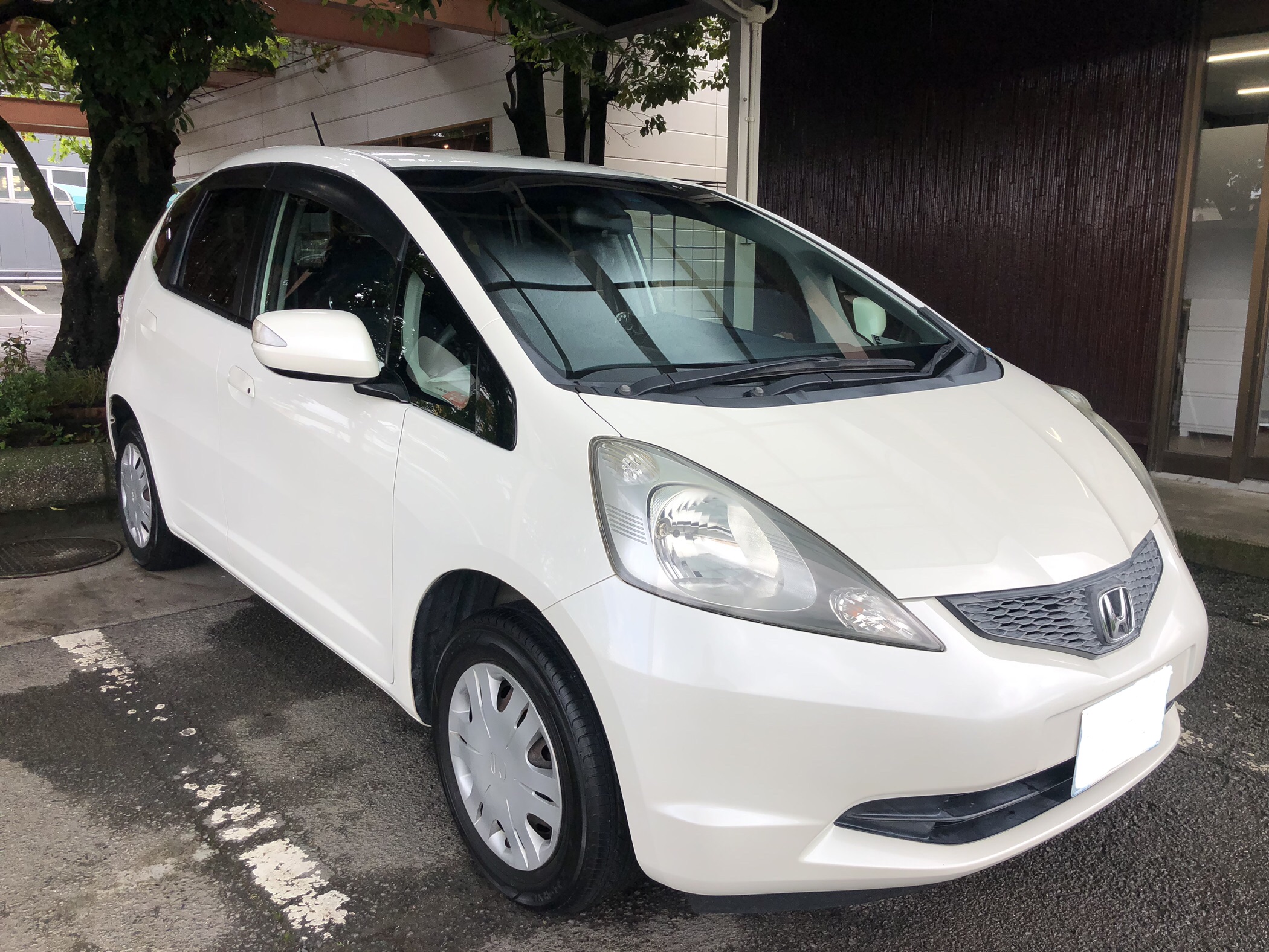 こんにちは😃磨きま専科の中村です。本日はホンダ フィットをご紹介致します。ウィンドウガラスのウロコが気になるとご相談頂きウロコ除去と撥水施工、ならびにボディもポリマーコーティングのご依