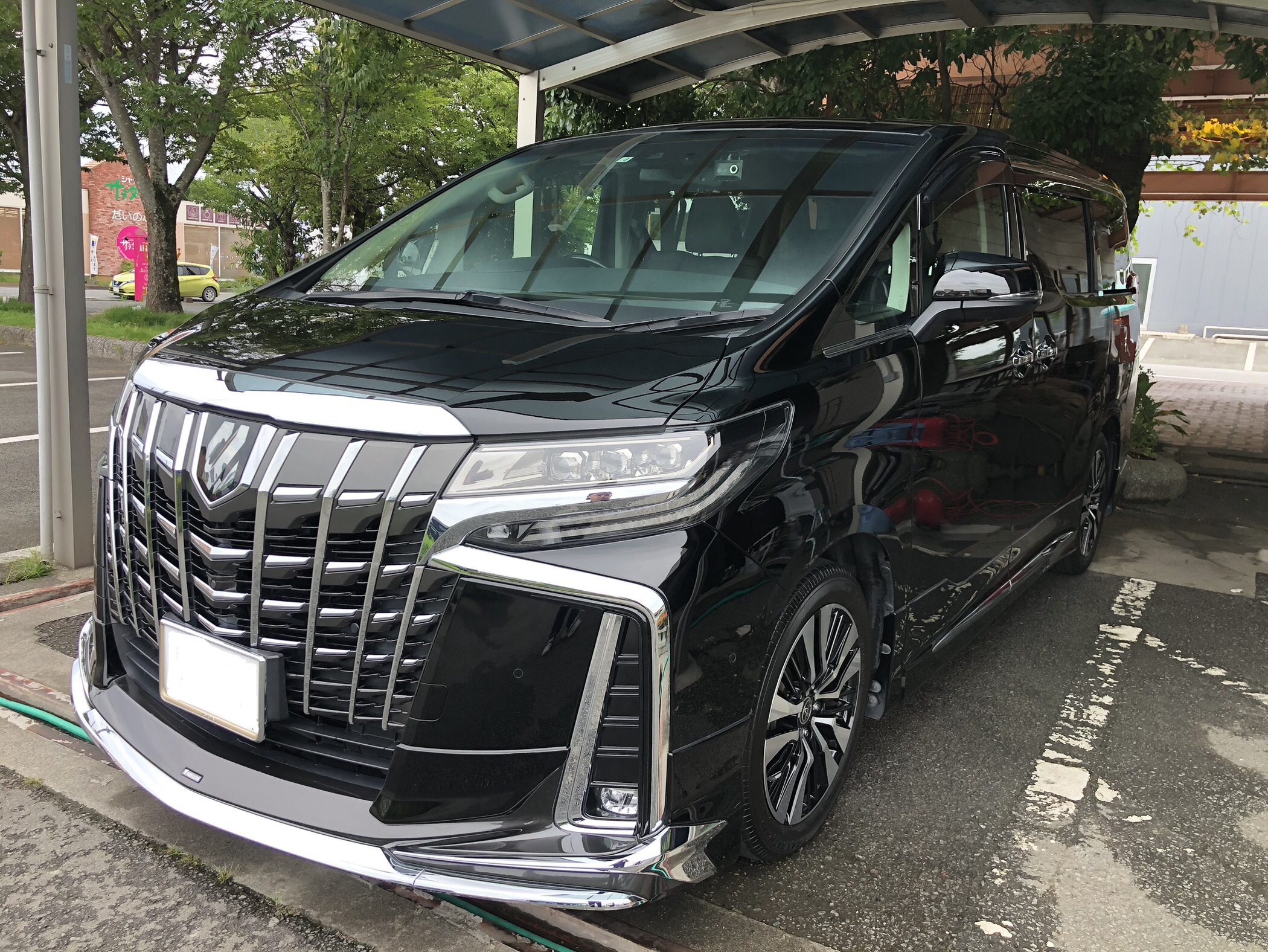 こんにちは😃磨きま専科の中村です。本日はトヨタ ヴェルファイアをご紹介致します。今回は洗車とフロントガラスの油膜除去、撥水施工のご依頼です。以前から乗りたかったヴェルファイア、とても大
