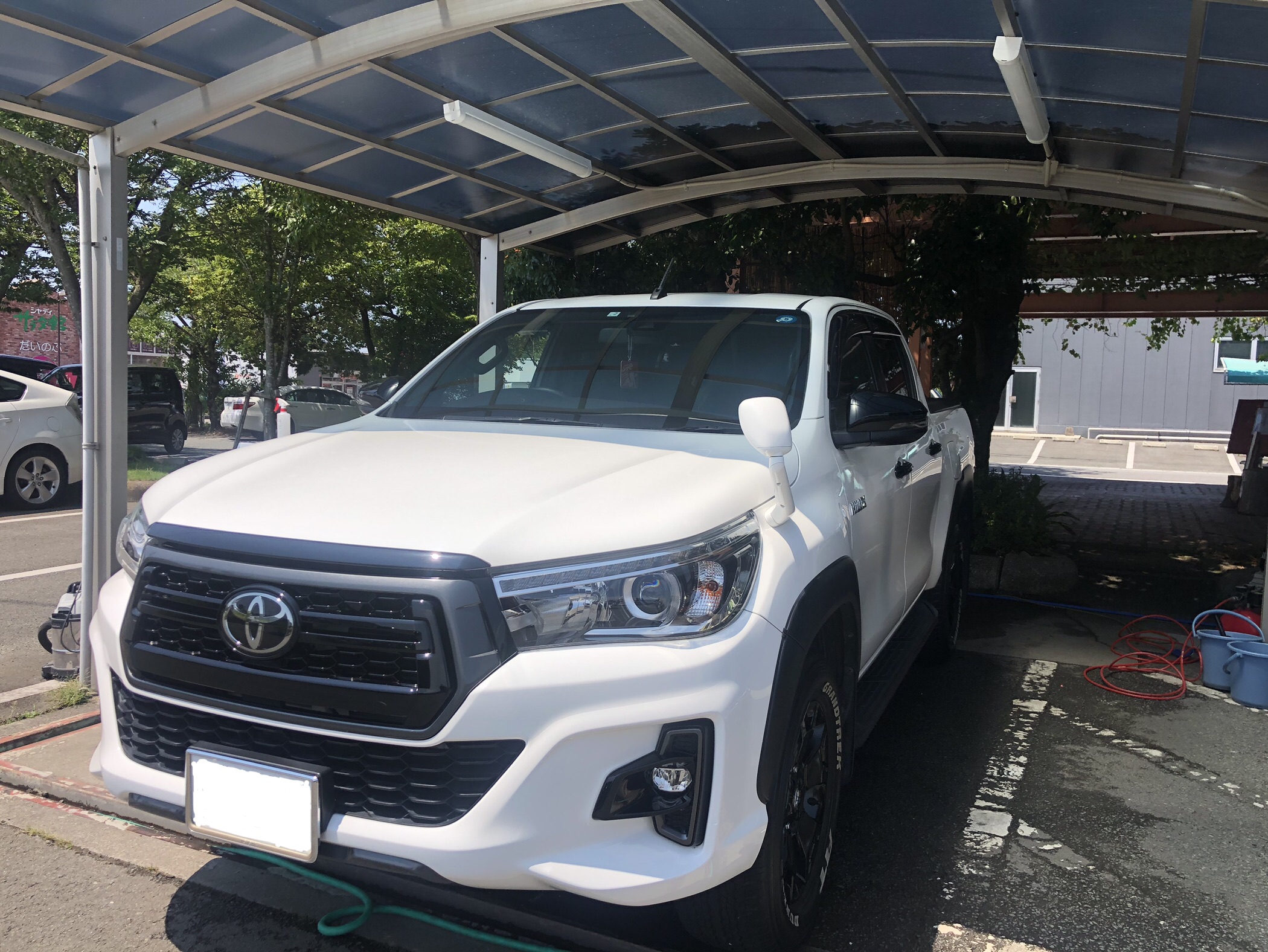 こんにちは😃磨きま専科の中村です。本日はトヨタ ハイラックスをご紹介致します。2回目のご来店!今回も前回同様ポリマーコーティングのご依頼です。1ヶ月半前にポリマーコーティング施工しまし