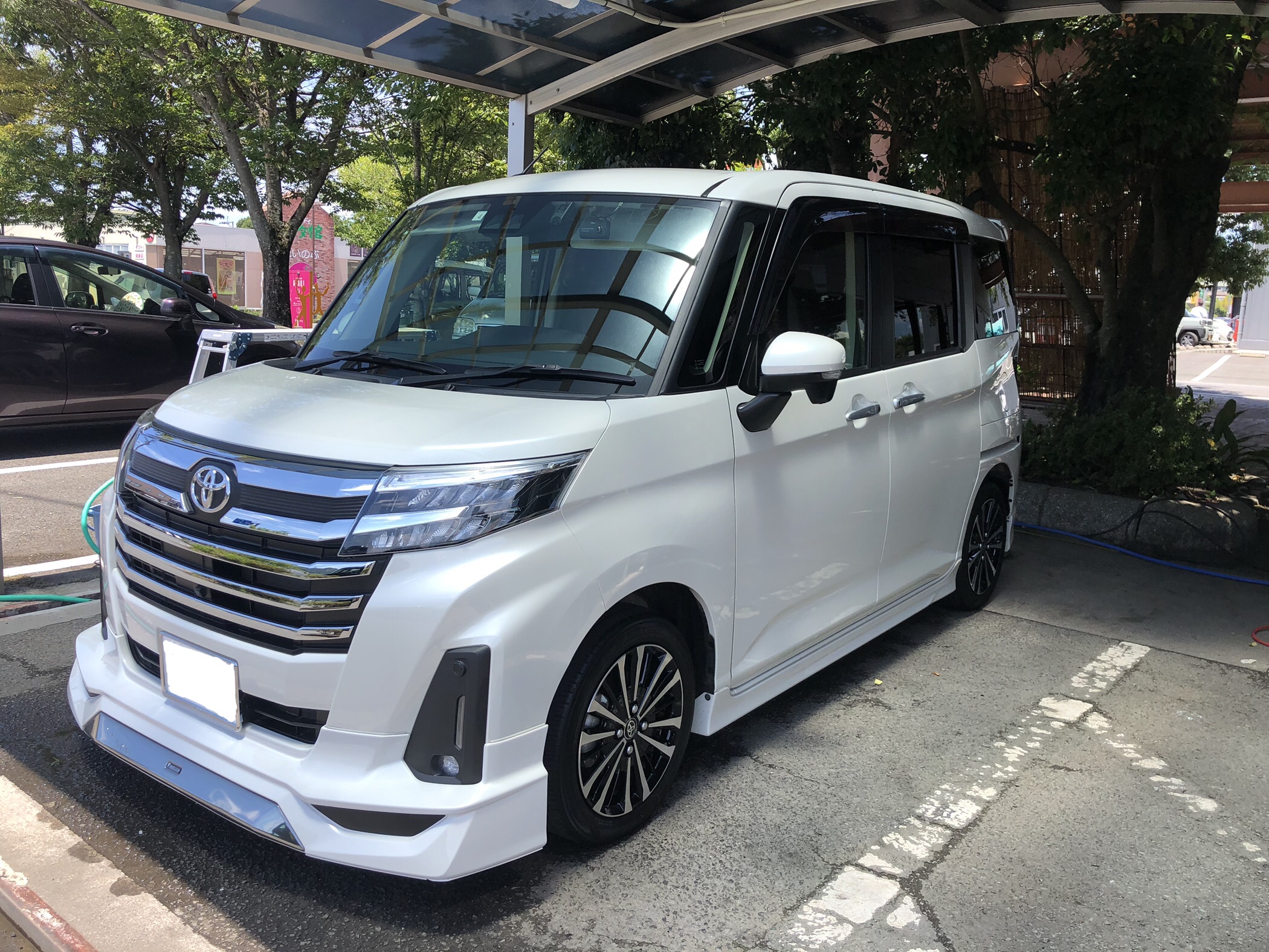 こんにちは😃磨きま専科の中村です。本日は、トヨタ ルーミーをご紹介致します。最近車を購入されたそうで、コーティング施工していないような気がするという事で今回ボディガラスコーティング1年
